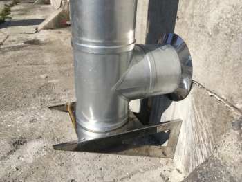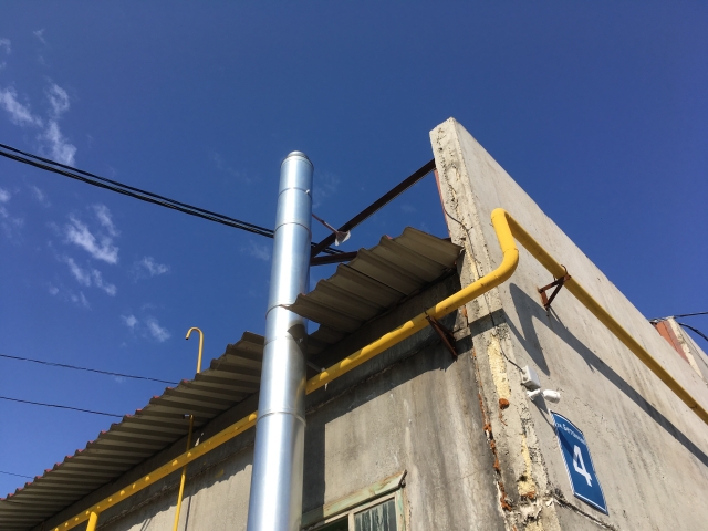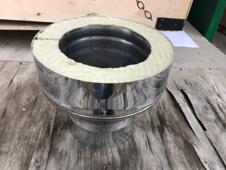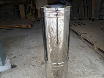 Мы изготавливаем и промышленные дымоходы, промышленные дымовые трубы и газоходы больших диаметров (внутренний диаметр сэндвич дымоходов до 500 мм.). Внутренний слой всегда нержавеющая сталь толщиной 0,8 мм, наружний слой - 0,5 мм.