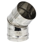 Колено (отвод) нерж. угол 45 d= 130мм. (s=0,5мм), где S - толщина металла. Предназначен для изменения направления дымового канала на угол не менее 45гр. Нержавеющая сталь марки AISI430 толщина 0,5мм. Температура рабочая до 850гр. С.